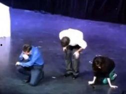 就在“吃瓜君”努力挽救表演的时候,更大的意外发生了。他在表演过程中,突然从舞台上摔了下来,场面一度十分混乱。幸运的是,他并没有受伤,但这一幕还是让直播间里的观众们惊呆了。